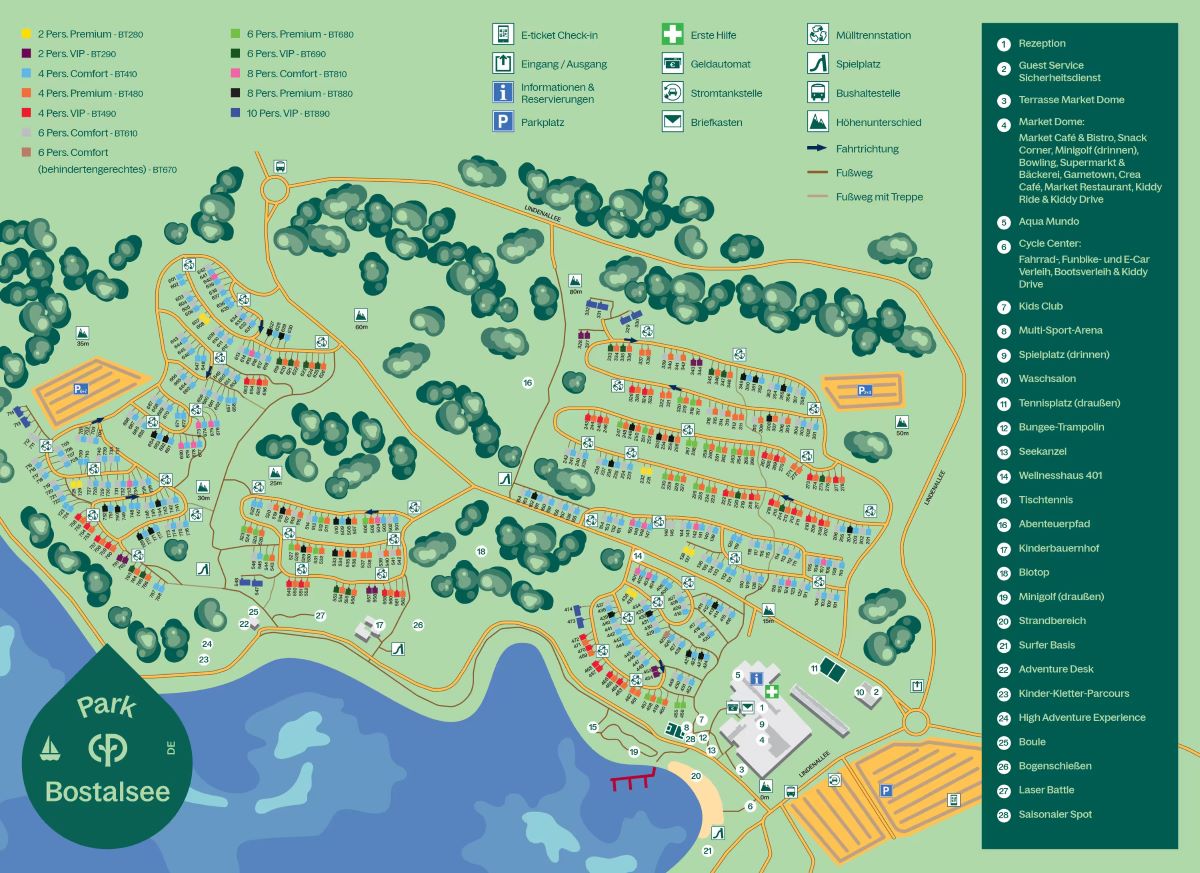 De ligging aan het Bostalmeer maakt dit park extra bijzonder. Je kunt hier zwemmen, zeilen, kajakken of suppen. Er zijn zandstranden en ligweiden om te ontspannen, en rondom het meer loopt een 6,8 kilometer lang wandel- en fietspad. Ideaal voor een rustige ochtendwandeling of een actieve fietstocht.