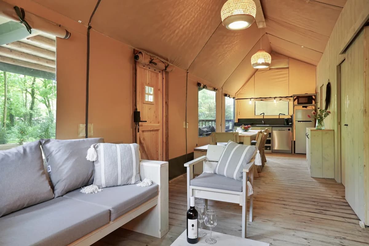 Onder Huizen midden in de natuur is Gooise Heide gelegen. Overnachten doe je op dit vakantiepark in één van de 45 luxe safaritenten. Je hebt hier een heerlijk luxe buitenleven, daarnaast is er een restaurant op het vakantiepark. Omdat, het vakantiepark omringd is door natuur kan je heerlijk wandelen en fietsen onder andere door het nabij gelegen natuurreservaat. Dagje weg? In verschillende plaatsen in het Gooi ben je binnen 15 minuten met de auto. Ook leuk is een dagje naar het Dolfinarium of het Dierenpark Amersfoort.