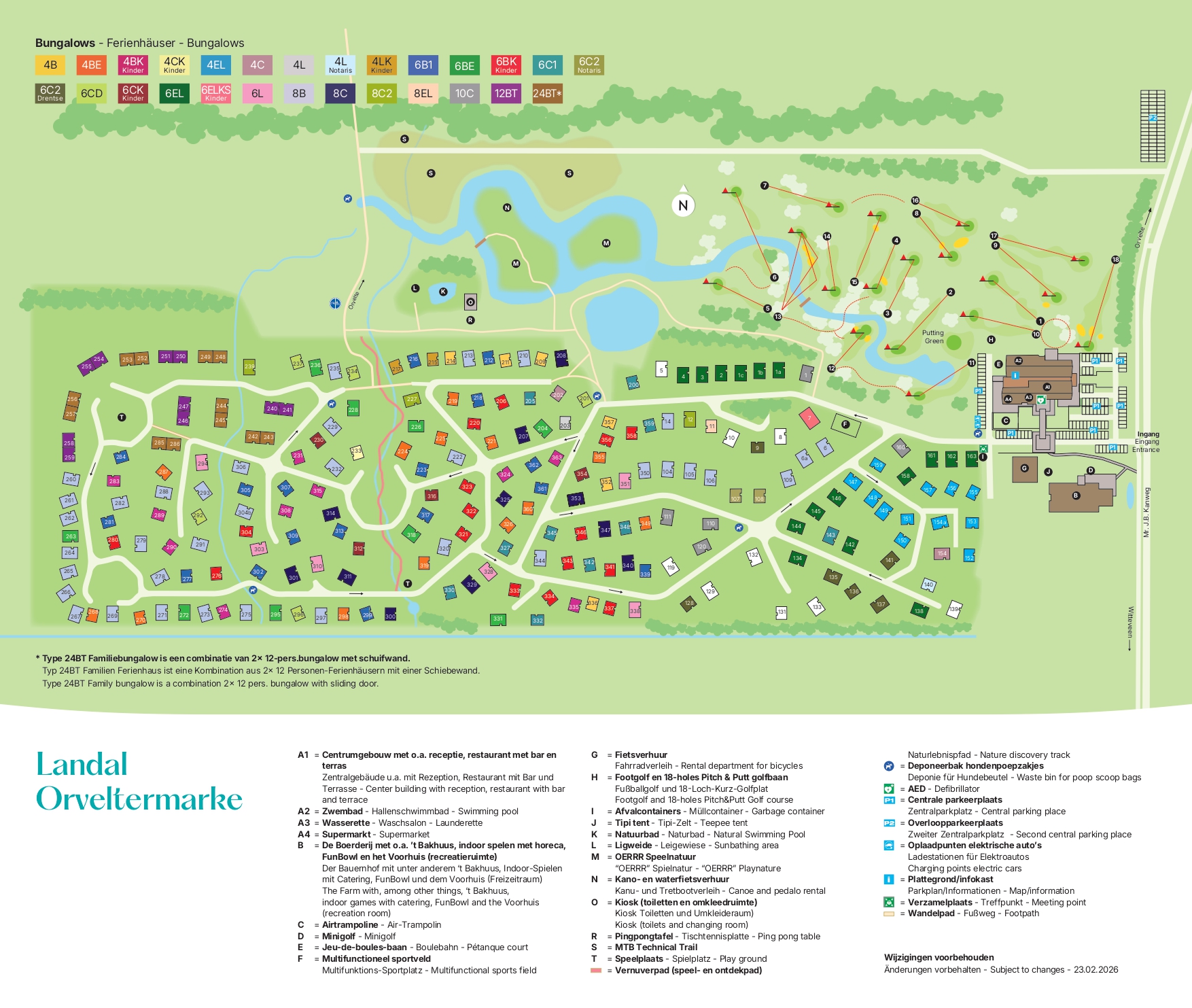 De bungalows op Landal Orveltermarke zijn ruim, modern en liggen verspreid over het groene terrein. Veel huisjes kijken uit op water of bos en bieden volop privacy. Kies voor een standaard accommodatie of verwen jezelf met een luxe variant met sauna. Ook zijn er speciale kinderbungalows en huisdiervriendelijke opties beschikbaar. De rust, het groen en de ruimte maken dat je hier écht tot jezelf komt.